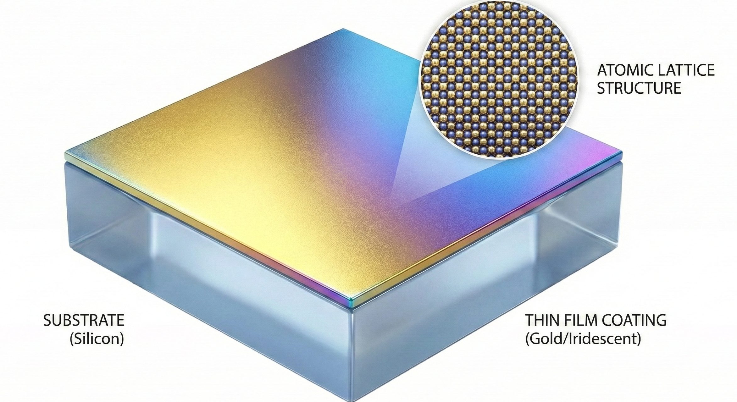 A thin film is a functional layer with a thickness typically from a few nanometers up to a few micrometers that is deposited onto a substrate to tailor optical, electrical, mechanical, or chemical properties. Unlike bulk materials, performance is dominated by the interface (film–substrate), the film’s microstructure (density, grain size, stress), and the thickness itself. Typical substrates include silicon wafers (200/300 mm), glass, metals, and polymers.